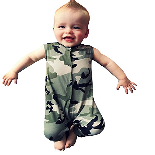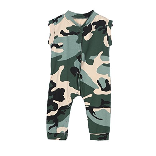 Domybestベビー服 ロンパース ボディスーツ カバーオール 男の子 女の子 かわいい ロンパース ジャンプスーツ ノースリーブ カジュアル 春 夏 迷彩柄 新生児 赤ちゃん 出産祝い 普段着 撮影 誕生日 (80(6-9ヶ月))