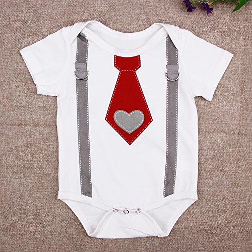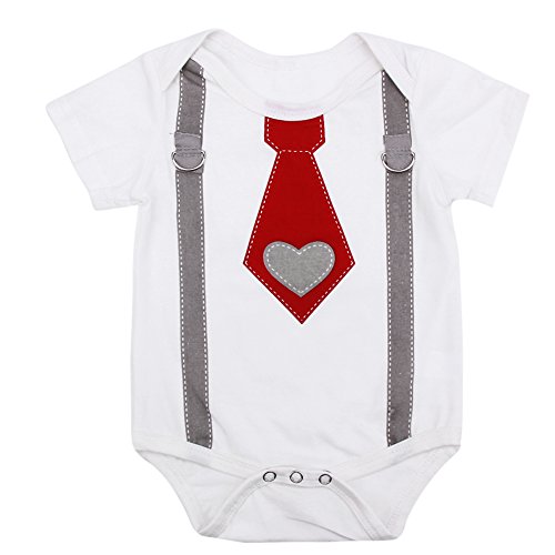 Domybestベビー服 ロンパース ボディスーツ カバーオール 女の子 男の子 かわいい ロンパース ジャンプスーツ 半袖 カジュアル 夏 ネクタイプリント 新生児 赤ちゃん 出産祝い 普段着 撮影 誕生日 (80(3-6ヶ月))