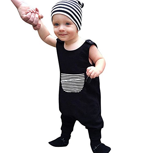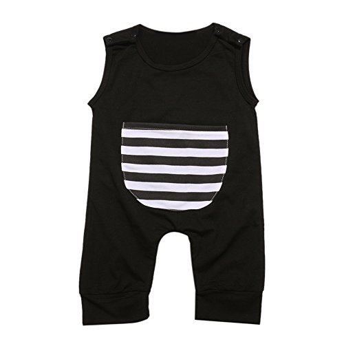 Domybestベビー服 ロンパース ボディスーツ カバーオール 男の子 女の子 ロンパース ジャンプスーツ ノースリーブ カジュアル 春 夏 ストライププリント 新生児 赤ちゃん 出産祝い 普段着 撮影 誕生日 (90(身長85-95cm))