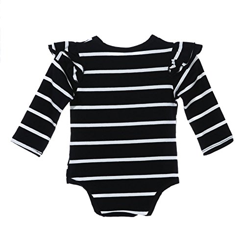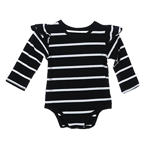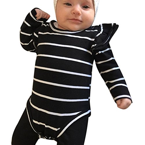 Domybestベビー服 ロンパース ボディスーツ カバーオール 男の子 女の子 かわいい ストライププリント ふわふわ飛び袖 ロンパース ジャンプスーツ 長袖 カジュアル 春 秋 夏の冷房対策にも 肌着 新生児 赤ちゃん 普段着 (80(6-12ヶ月), ホワイト)