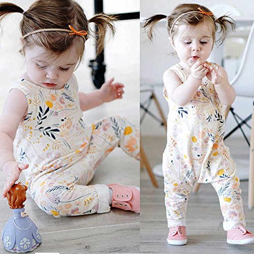 Domybestベビー服 女の子 男の子 ロンパース カバーオール ボディスーツ オーバーオール ジャンプスーツ ノースリーブ 花柄 春 夏 幼児 赤ちゃん 普段着 お出かけ 旅行 ビーチ 海辺 (70(6-12ヶ月))