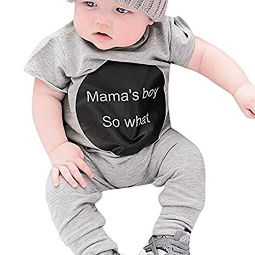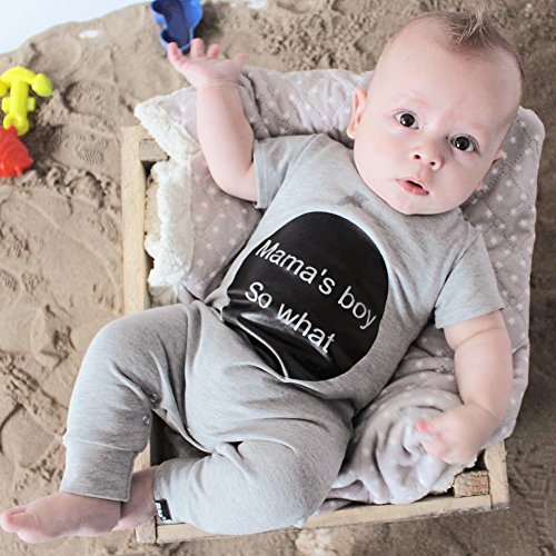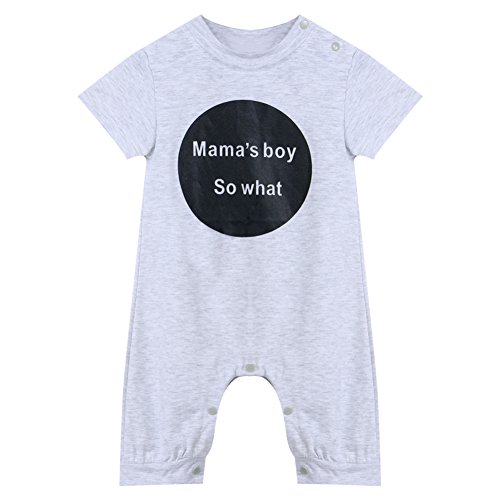 Domybestベビー服 男の子 ロンパース カバーオール ボディスーツ オーバーオール ジャンプスーツ 半袖 英字プリント 春 夏 秋 幼児 赤ちゃん 普段着 ルームウェア お出かけ 旅行 ビーチ 海辺 2色選べる (90(12-18ヶ月), グレー)