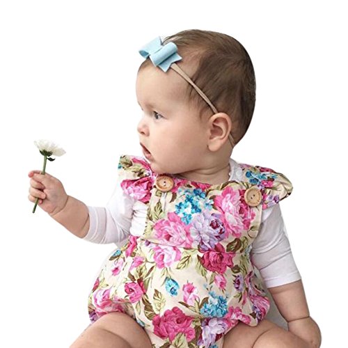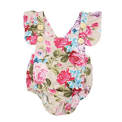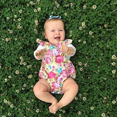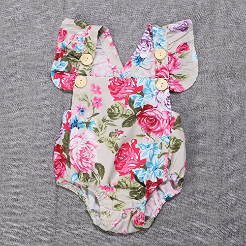 Domybestベビー ロンパース 女の子 ベビー服 可愛い 赤ちゃん ボディスーツ カバーオール 連体服 ジャンプスーツ カジュアル 夏 花プリント 新生児 赤ちゃん 出産祝い 普段着 撮影 誕生日 (90(6-12ヶ月))