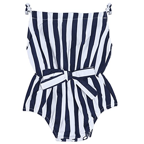 Domybestベビー ロンパース 女の子 ベビー服 ロンパース 可愛い ストライプ柄 赤ちゃん ボディスーツ カバーオール スリングロンパース 連体服 ジャンプスーツ カジュアル 夏 新生児 赤ちゃん 出産祝い 普段着 撮影 誕生日 (90(18-24ヶ月))