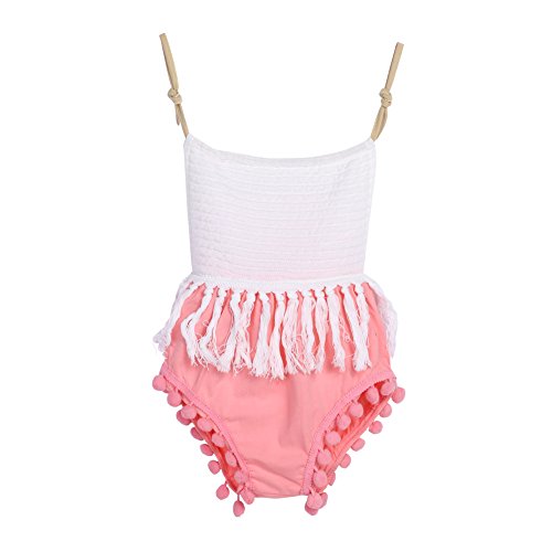 Domybestベビー服 子供服 女の子 ロンパース カバーオール ボディスーツ オーバーオール ジャンプスーツ ガールズ スリングロンパース サスペンダーパンツ ズボン ホルターネック ノースリーブ タッセル 夏 赤ちゃん 普段着 お出かけ 旅行 ビーチ 海辺 (80(6-12ヶ月))