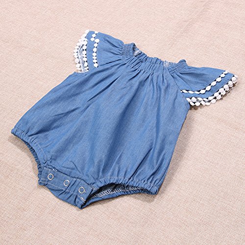 Domybestベビー ロンパース 女の子 ベビー服 可愛い 赤ちゃん ボディスーツ カバーオール 連体服 ジャンプスーツ カジュアル 夏 デニム 新生児 赤ちゃん 出産祝い 普段着 撮影 誕生日 (70(3-6ヶ月))