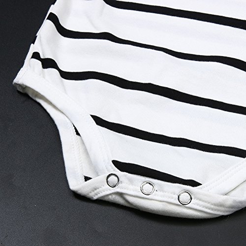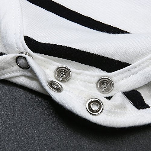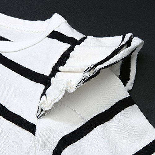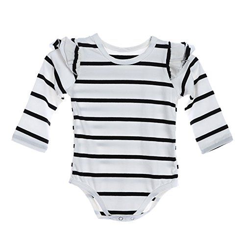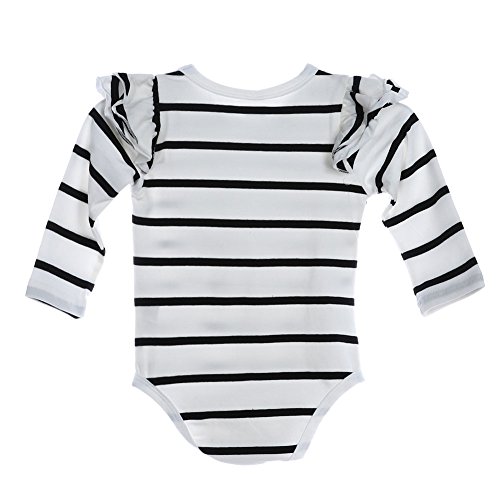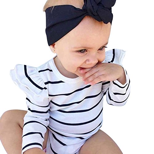 Domybestベビー服 ロンパース ボディスーツ カバーオール 男の子 女の子 かわいい ストライププリント ふわふわ飛び袖 ロンパース ジャンプスーツ 長袖 カジュアル 春 秋 夏の冷房対策にも 肌着 新生児 赤ちゃん 普段着 (90(12-18ヶ月), ホワイト)