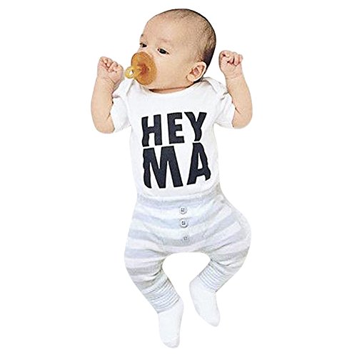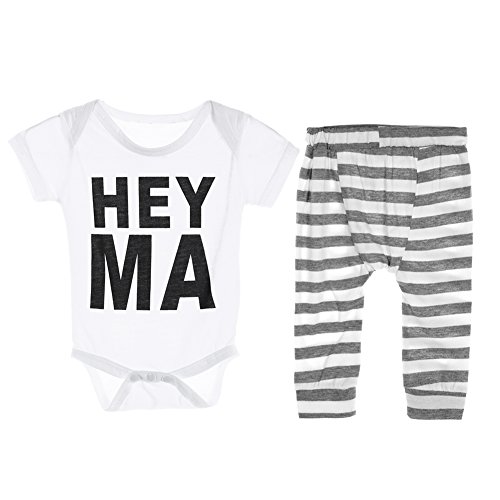 Domybestベビー服 ロンパース 新生児 セットアップ ロンパース+パンツ 2点セット ボディスーツ カバーオール 男の子 女の子 ロンパース ジャンプスーツ 半袖 カジュアル 英字プリント 春 夏 秋 新生児 赤ちゃん 出産祝い 普段着 ホワイト (70(0-6ヶ月))