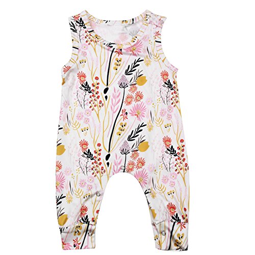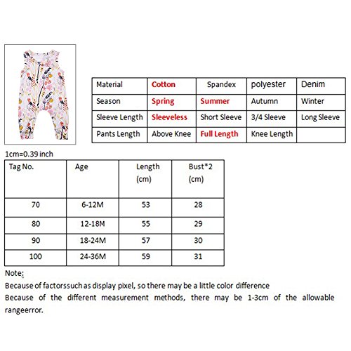Domybestベビー服 女の子 男の子 ロンパース カバーオール ボディスーツ オーバーオール ジャンプスーツ ノースリーブ 花柄 春 夏 幼児 赤ちゃん 普段着 お出かけ 旅行 ビーチ 海辺 (100(24-36ヶ月))