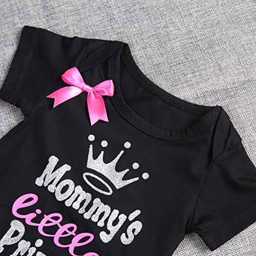 Domybestベビー服 ロンパース 女の子 新生児 ボディスーツ カバーオール ロンパース ジャンプスーツ 半袖 カジュアル リボン 英字プリント 春 夏 新生児 赤ちゃん 出産祝い 普段着 2色選べる (80(3-6ヶ月), ブラック)