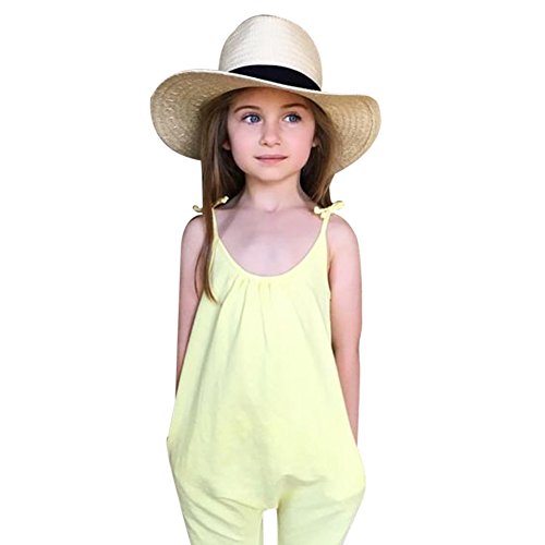 Domybestベビー服 子供服 女の子 ロンパース カバーオール ボディスーツ オーバーオール ジャンプスーツ ガールズ スリングロンパース ズボン 2-8歳 ノースリーブ 夏 赤ちゃん 普段着 お出かけ 旅行 ビーチ 海辺 (100(3-4歳), イエロー)