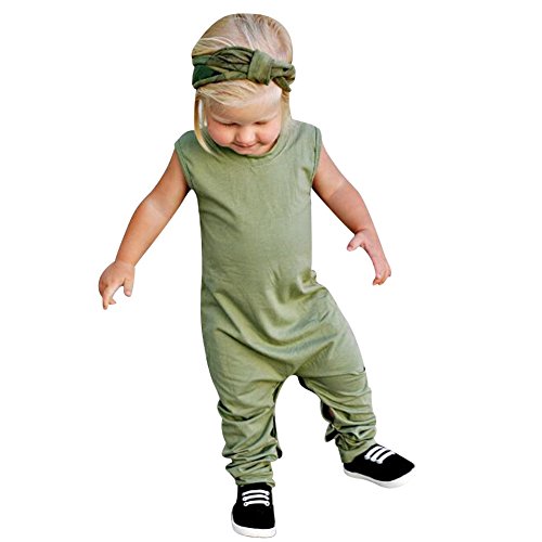 Domybestベビー服 ロンパース ボディスーツ カバーオール 男の子 女の子 ロンパース+ヘアバンド 2点セット ジャンプスーツ ノースリーブ カジュアル 春 夏 秋 新生児 赤ちゃん 出産祝い 普段着 撮影 誕生日 (90(24-30ヶ月))