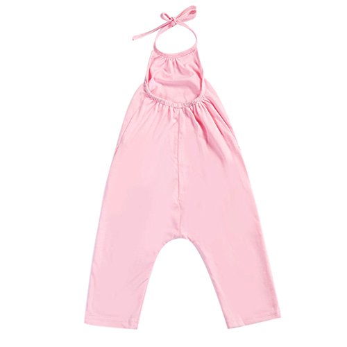 Domybest子供服 女の子 ロンパース カバーオール ボディスーツ オーバーオール ホルターネック ノースリーブ 夏 旅行 海辺 (90(身長80-90cm), ピンク)