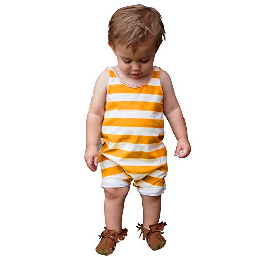 Domybestベビー服 女の子 ロンパース ショートオール カバーオール ボディスーツ オーバーオール ジャンプスーツ ガールズ ノースリーブ ボーダー 夏 赤ちゃん 普段着 お出かけ 出産お祝い オレンジ (80(6-12ヶ月))