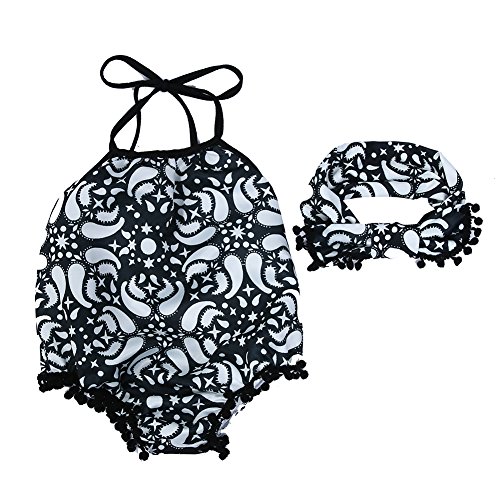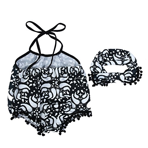 Domybestベビー服 女の子 ロンパース ロンパース+ヘアバンド 2点セット ジャンプスーツ カバーオール スリングロンパース ボディスーツ オーバーオール ホルターネック 夏 花柄 袖無し 普段着 お出かけ ビーチ 海辺 (100(12-18ヶ月), B)