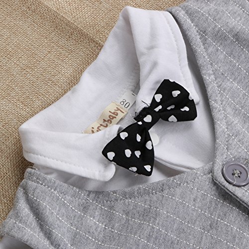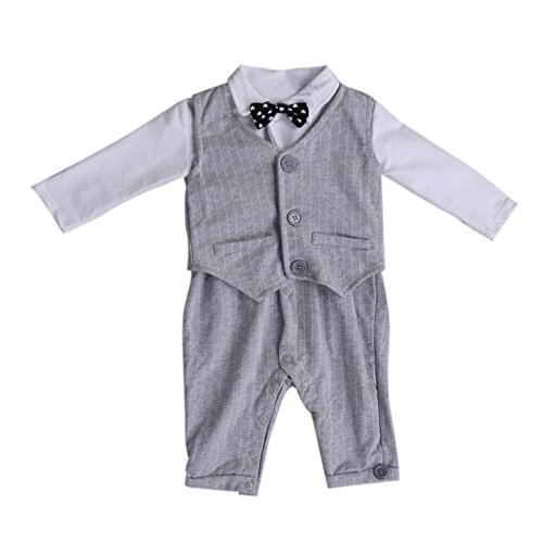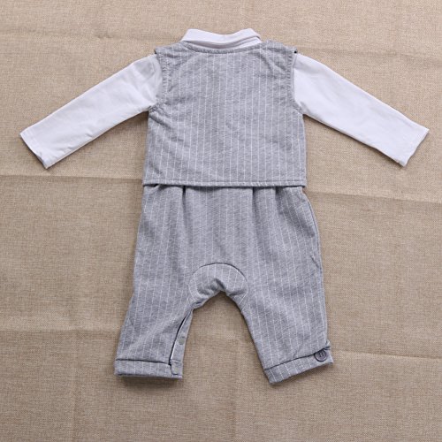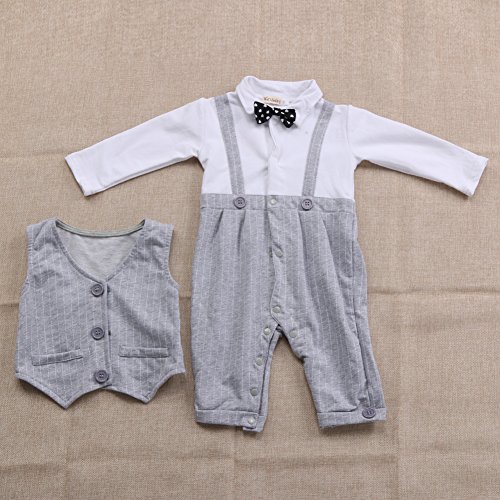 Domybestベビー服 ロンパーススーツ ロンパース+ベスト 2点セット フォーマル セレモニーロンパース オーバーオール 男の子 紳士服 長袖 ボディスーツ 春 秋 ジェントルメン 蝶結び 新生児 幼児 結婚式 出産祝い 撮影 記念日 誕生日 (95(18-24ヶ月))