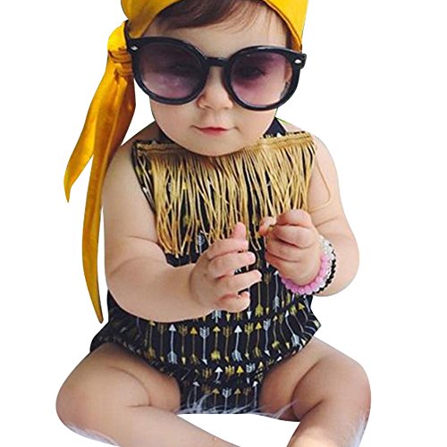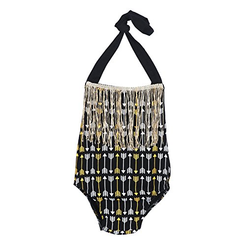 Domybestベビー服 女の子 ロンパース ジャンプスーツ カバーオール ボディスーツ オーバーオール ホルターネック 夏 プリント 袖無し 普段着 お出かけ ビーチ 海辺 (90(9-12ヶ月))