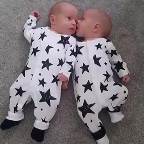 Domybestベビー服 ロンパース カバーオール ボディスーツ 前開き 男の子 女の子 長袖 カジュアル 春 夏 星プリント 新生児 赤ちゃん 出産祝い 普段着 撮影 誕生日 (90(9-12ヶ月))