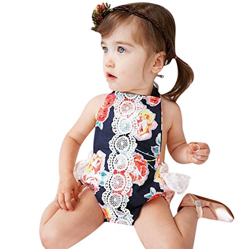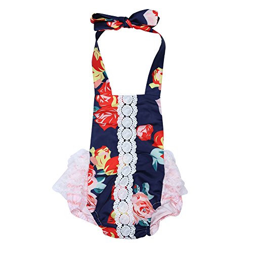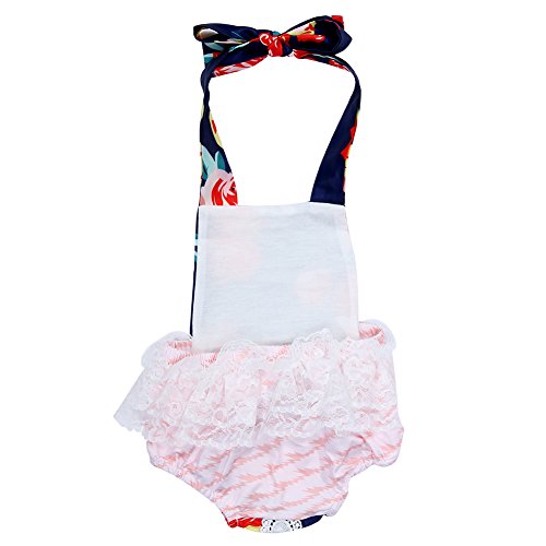 Domybestベビー服 女の子 ロンパース ジャンプスーツ カバーオール スリングロンパース ボディスーツ オーバーオール ホルターネック 夏 プリント 袖無し 普段着 お出かけ ビーチ 海辺 (100(18-24ヶ月))