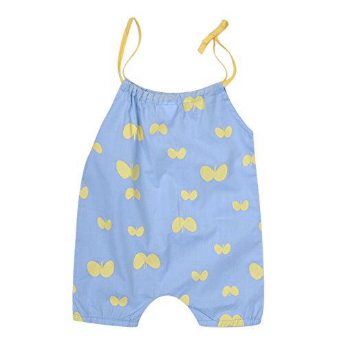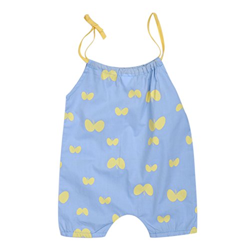 Domybestベビー服 女の子 ロンパース ジャンプスーツ カバーオール ボディスーツ オーバーオール ホルターネック 夏 プリント 袖無し 普段着 お出かけ ビーチ 海辺 (80(12-18ヶ月, ブルー)
