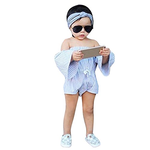 Domybestベビー服 女の子 ロンパース ジャンプスーツ カバーオール ボディスーツ オーバーオール 夏 プリント 袖無し オフショルダー 普段着 お出かけ ビーチ 海辺 (70(0-6ヶ月))