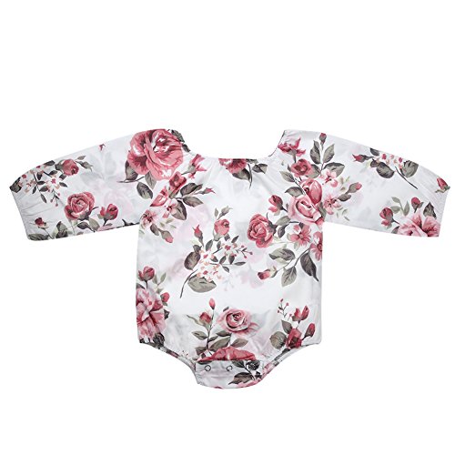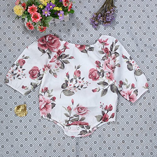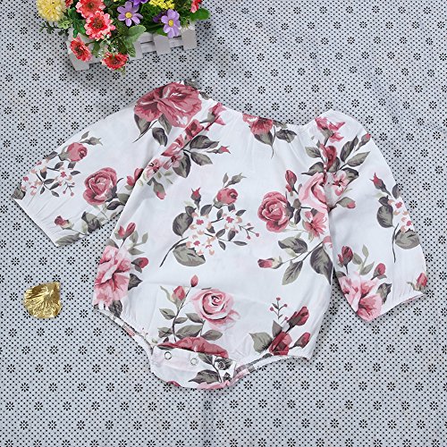 Domybest ベビーロンパース 女の子 ベビー服 超可愛い花柄プリント 長袖 パンツボタン 股下全開 春夏秋 赤ちゃん ボディスーツ カバーオール 連体服 ジャンプスーツ 新生児 出産祝い 普段着 誕生日ギフト 70-100 (90)