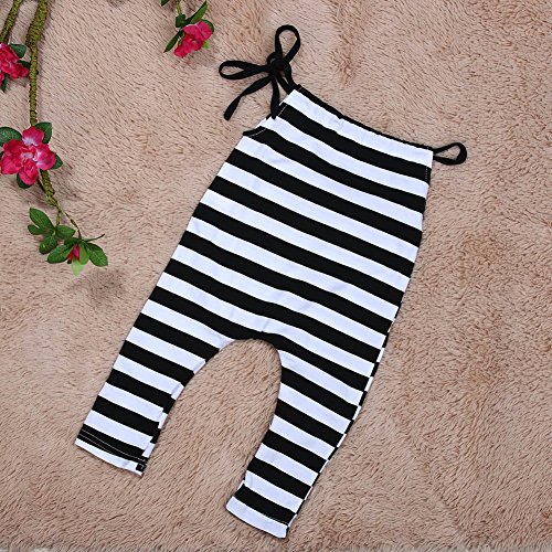 Domybestベビー服 女の子 ロンパース ジャンプスーツ カバーオール ボディスーツ オーバーオール ホルターネック 夏 プリント 袖無し 無地 普段着 お出かけ ビーチ 海辺 無地 ボーダー 3色 (90, ボーダー)
