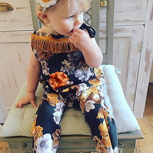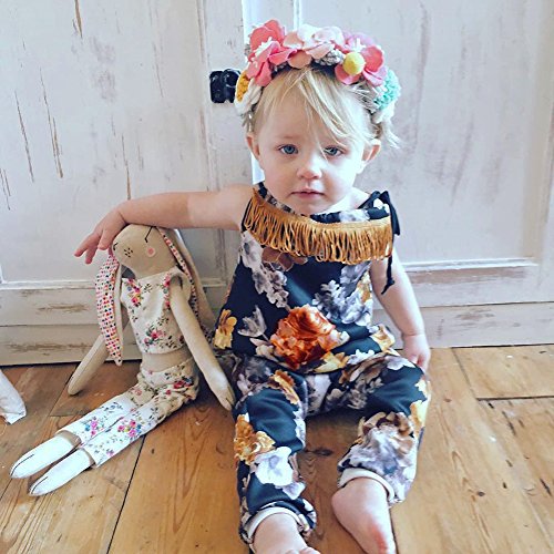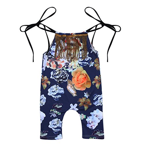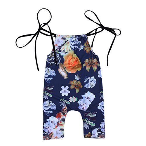 Domybestベビー服 女の子 ロンパース ジャンプスーツ 花柄 ボディスーツ オーバーオール ホルターネック 夏 袖無し 普段着 お出かけ ビーチ 海辺 (100)