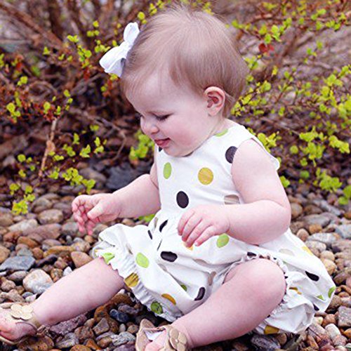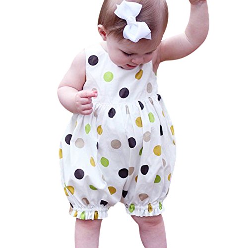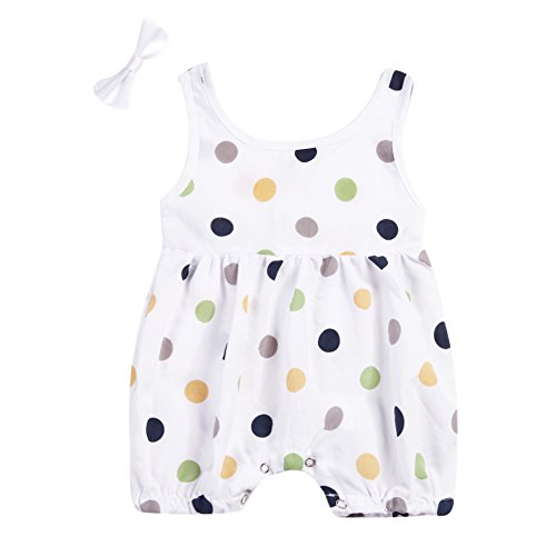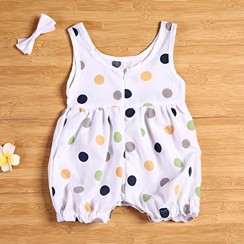 Domybestベビー服 女の子 ロンパース ショートオール 蝶結びヘアピンクリップ付き カバーオール ボディスーツ オーバーオール ジャンプスーツ ガールズ ノースリーブ ドットプリント 夏 赤ちゃん 普段着 お出かけ 出産お祝い ホワイト (100(2-3歳))