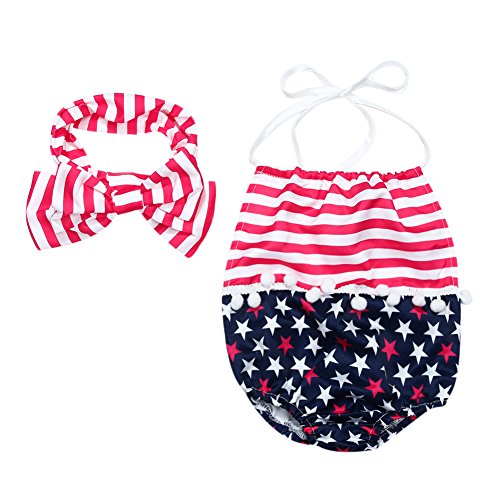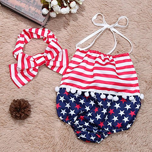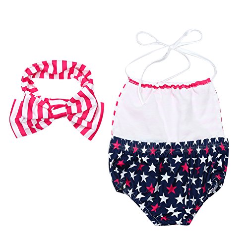 Domybestベビー服 女の子 ロンパース+ヘアバンド 2点セット 夏ボディスーツ ボーダー 星 赤ちゃんオーバーオール 袖無し 新生児 祝い