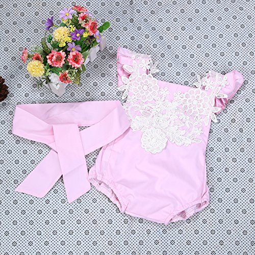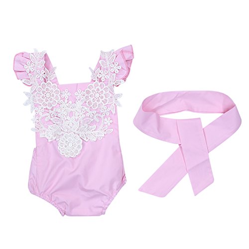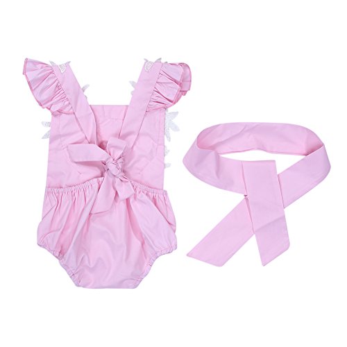 Domybestベビー服 女の子 ロンパース+ヘアバンド 2点セット 夏ボディスーツ レース フリル オーバーオール 袖無し 新生児 祝い