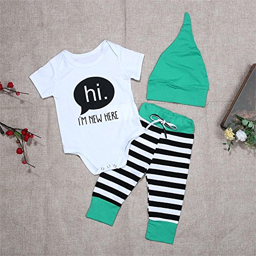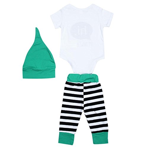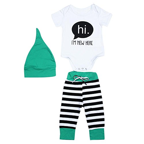 Domybestベビー服 ロンパース+帽子+ロングパンツ 3点セット ボーダー柄 半袖 ボディスーツ オーバーオール 夏 普段着 お出かけ (100)