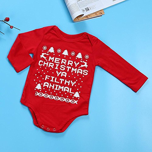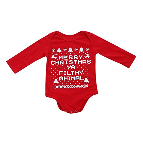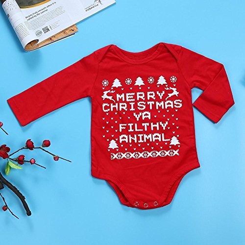 Domybestベビー服 ロンパース 夏 女の子ボディスーツ 赤ちゃんカバーオール 可愛い 新生児 出産祝い レッド クリスマス (70)