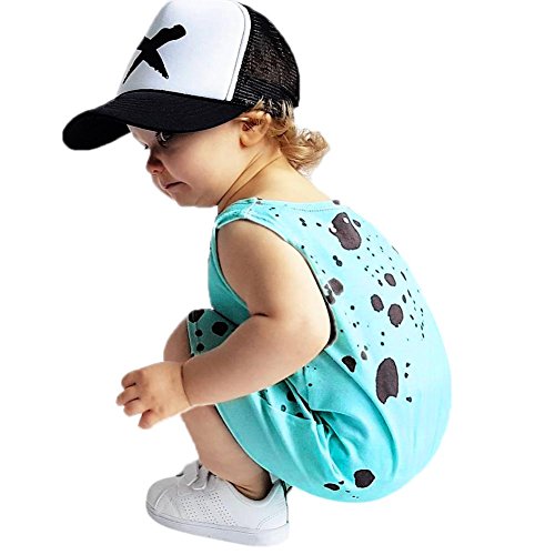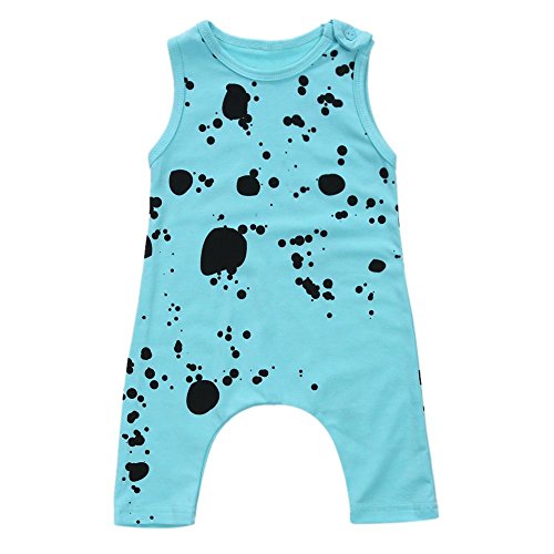 Domybestベビー服 ロンパース 夏 女の子ボディスーツ 赤ちゃんカバーオール 袖なし ブルー 可愛い カジュアル 新生児 出産祝い