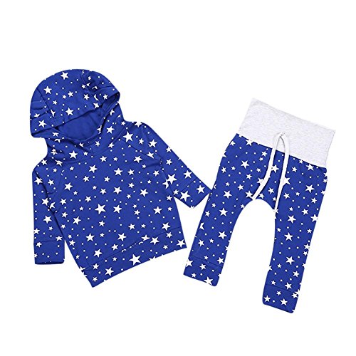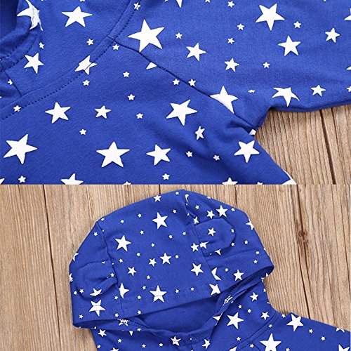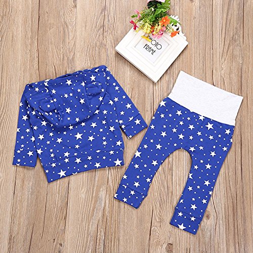 Domybestベビー服 長袖トップス+ロングパンツ上下二点セット 帽子付き 秋 星 ブルー 子供服 新生児 赤ちゃん 出産祝い (90) (100)