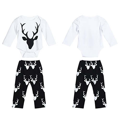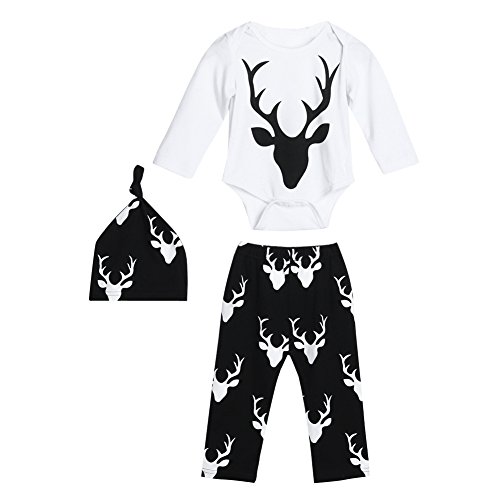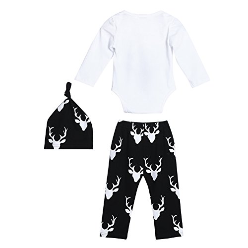 Domybestベビー服 長袖ロンパース+帽子+ロングパンツ 3点セット 黒白 ボディスーツ オーバーオール 春秋 普段着 お出かけ (100)