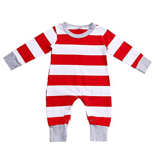 Domybest【ゆりかごのつなを きねずみがゆするよ】---(Baby)春秋 ベビー服 新生児カバーオール 子供寝具 赤と白のストライプ クリスマス 快適 強い弾力性 柔らかくマテリアルスキン 0-3歳に適し