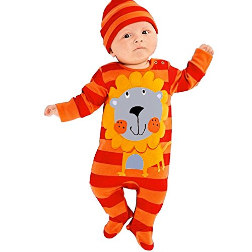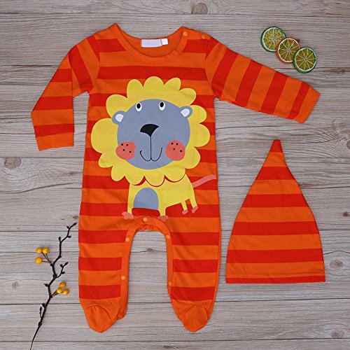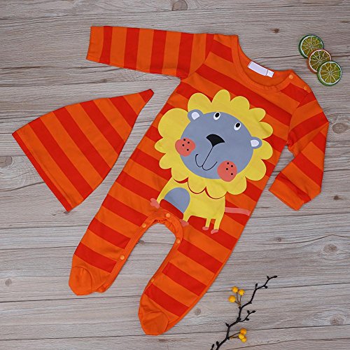 Domybest 春秋 カバーオール ベビー服 寝具 長袖 帽子 男の子 女の子 0-24ヶ月 ストライプ 小さなライオンのパターン; 柔らかく快適 強い弾力性 出産祝い 百日記念 お祝いギフト 誕生日