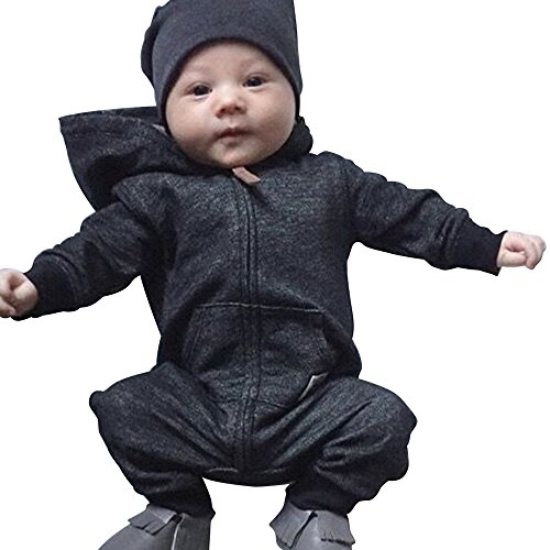 Domybest カバーオール ベビー服 寝具 長袖 フード付き 男の子 0-18ヶ月 ブラック 強い弾力性 柔らかく快適 出産祝い 百日記念 お祝いギフト 誕生日