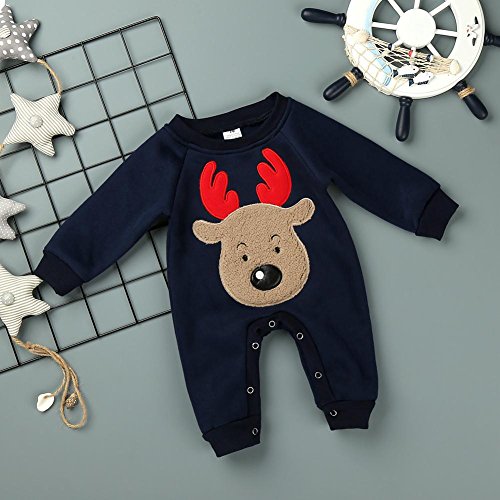 Domybest 子供服 カバーオール ロンパース ベビー服 クリスマス衣装 長袖 男の子 女の子 0-2歳 エルクの柄 裏起毛 柔らかく お祝い 誕生日 ギフト 幼稚園 普段着 部屋着 クリスマス