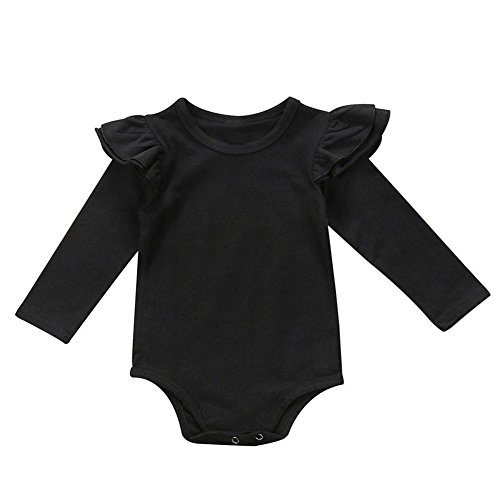 Domybest 子供服 カバーオール ロンパース ベビー服 長袖 女の子 0-2歳 無地 ブラック かわいい 普段着 部屋着 お出かけ
