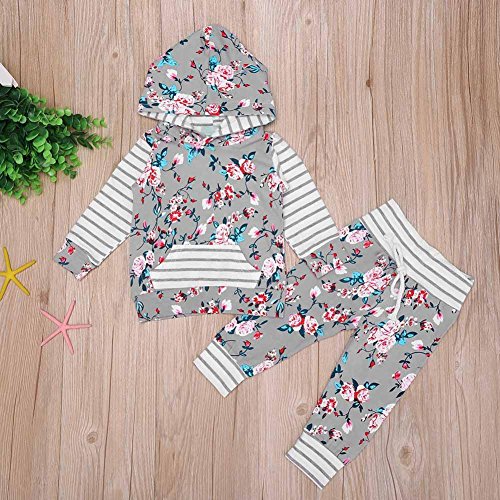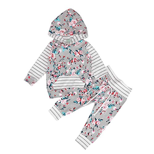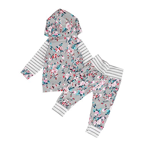 Domybest 2点セット 子供服 カバーオール ロンパース ベビー服 長袖 フード付き 女の子 0-18ヶ月 花柄 かわいい お祝い 誕生日 ギフト 幼稚園 普段着 部屋着