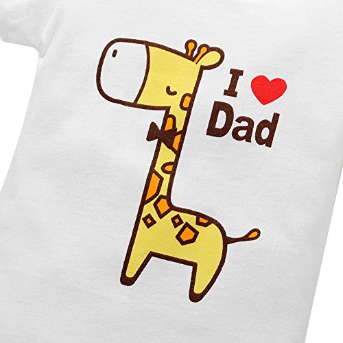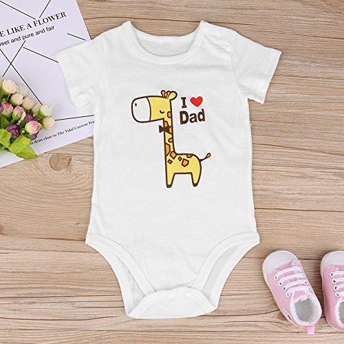 Domybest ベビー服 ロンパース 女の子 男の子 新生児 半袖 可愛い キリンパターン コットン Tシャツ 出産祝い 超柔らかい 普段着 春 夏 I Love Dad 0-6ヶ月
