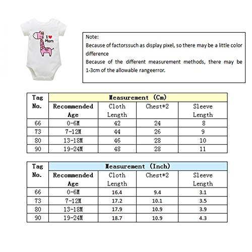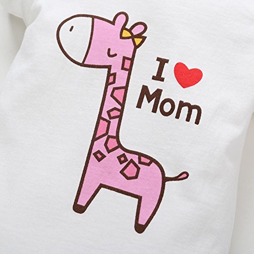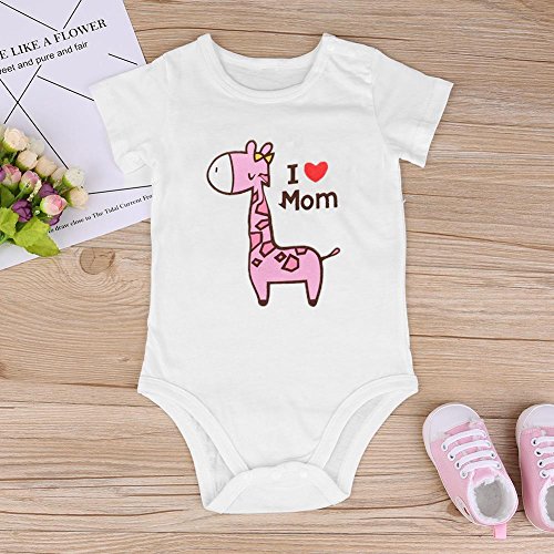 Domybest ベビー服 ロンパース 女の子 男の子 新生児 半袖 可愛い キリンパターン コットン Tシャツ 出産祝い 超柔らかい 普段着 春 夏 I Love Mom 0-6ヶ月