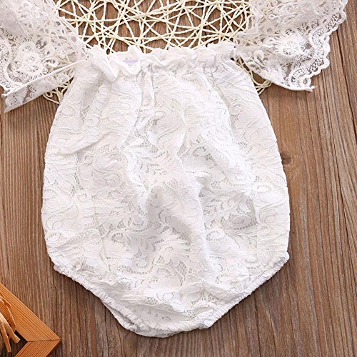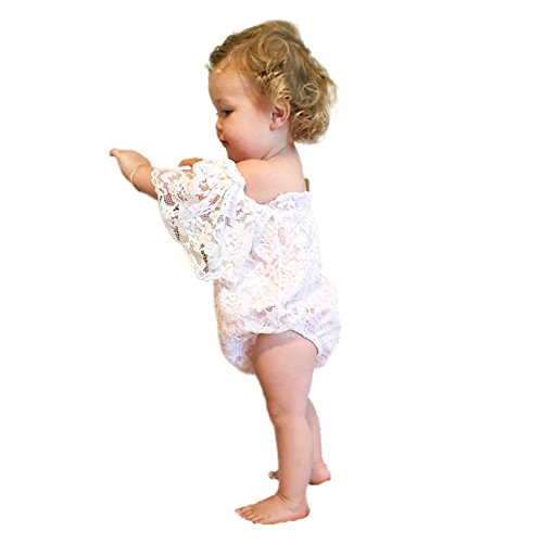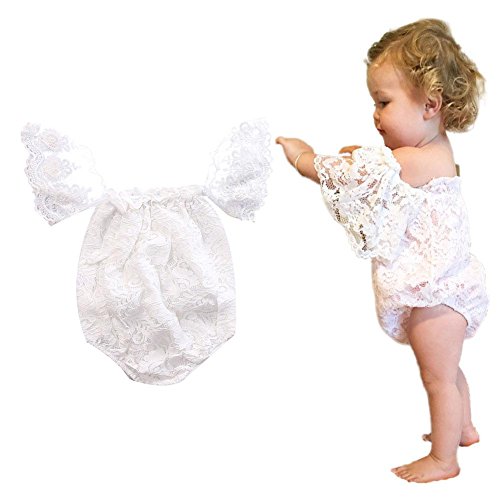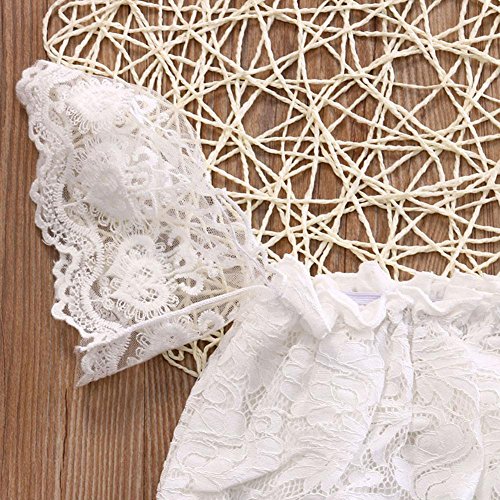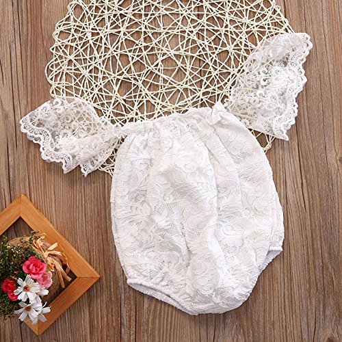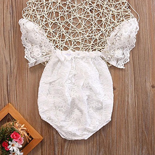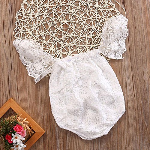 Domybest ロンパース ベビー服 写真服 カバーオール 半袖 女の子 ボートネック レース 赤ちゃん 新生児 可愛い 超柔らかい 快適 コットン 出産祝い プレゼント カジュアル 普段着 撮影 春 夏 ホワイト 0-6ヶ月
