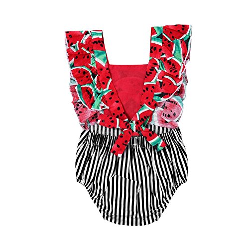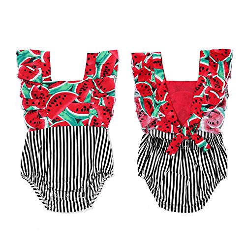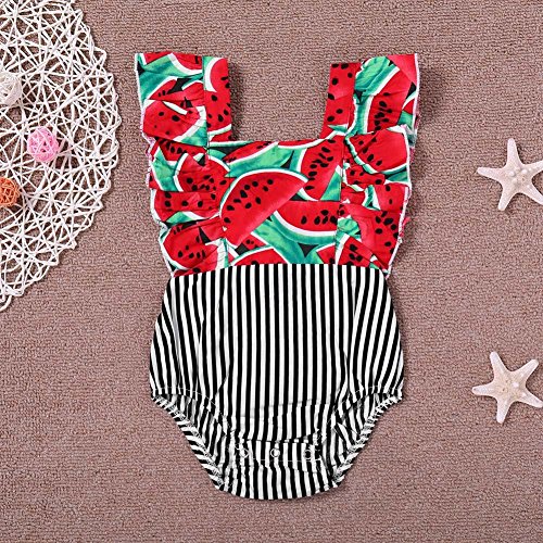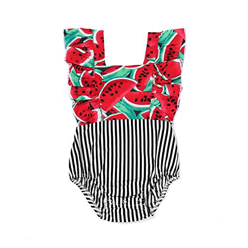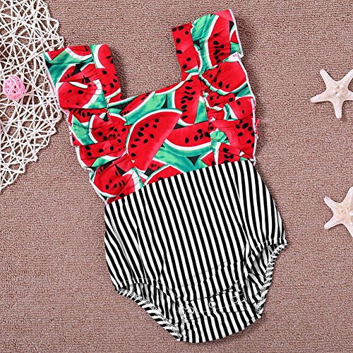 Domybest ロンパース ベビー服 連体服 カバーオール 女の子 水着 袖なし 肌着 赤ちゃん 新生児 可愛い 超柔らかい 快適 伸縮性 コットン カジュアル 普段着 撮影 赤 果物柄 ストライプ 春 夏