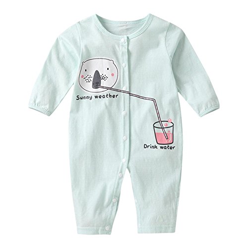 Domybest ロンパース ベビー服 女の子 男の子 赤ちゃん 新生児 長袖 長ズボン 春 夏 秋 前開き パジャマ カバーオール 連体服 可愛い 動物柄 超柔らかい 綿 出産祝い プレゼント 普段着 60/0-6ヶ月