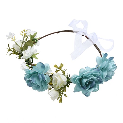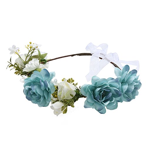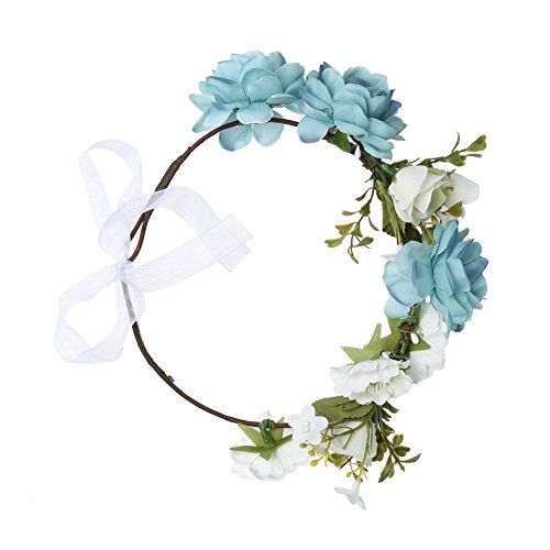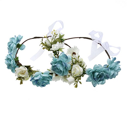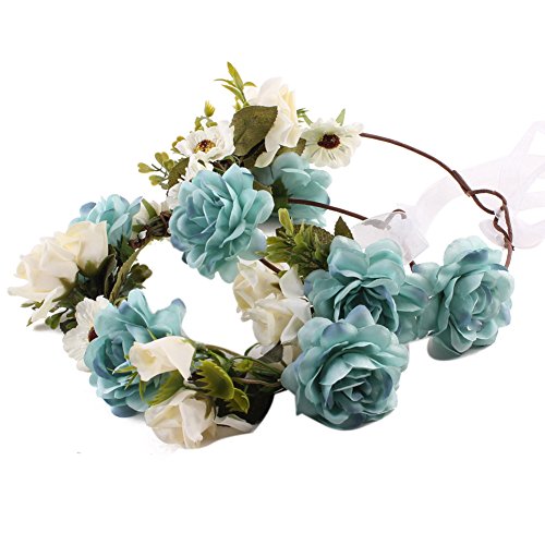Domybest子供 花冠 フラワーヘアバンド 大人 子供 2点セット ヘッドドレス ヘアアクセサリー 結婚式 子供用 髪飾り 女の子 キッズ 髪飾り 花かんむり ウェディング フラワー ヘッド ママとベビー 2色選べる (ブルー)