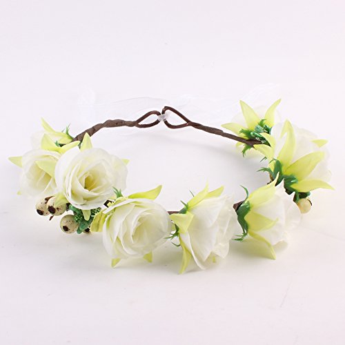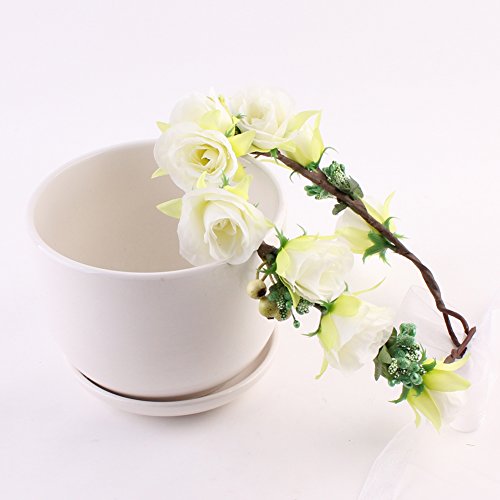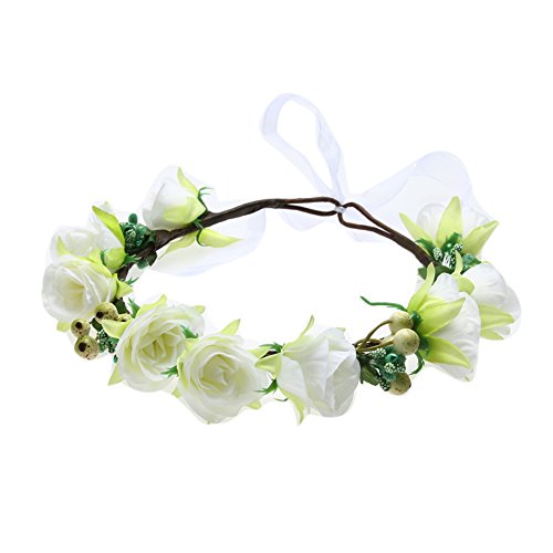 Domybest子供 花冠 フラワーヘアバンド ヘッドドレス ヘアアクセサリー 結婚式 ブライダル 子供用 髪飾り 女の子 キッズ 髪飾り 花かんむり ウェディング フラワー ヘッド 5色選べる (ホワイト)