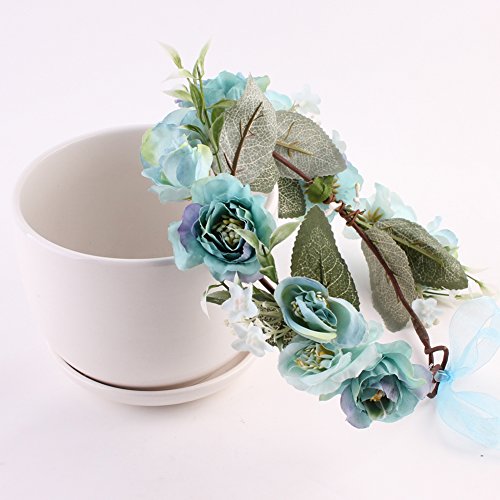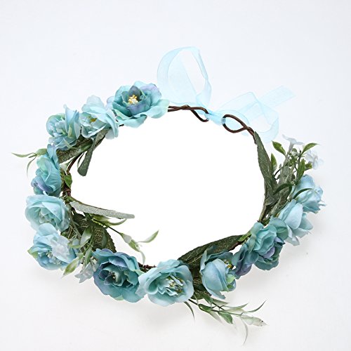 Domybest子供 花冠 フラワーヘアバンド ヘッドドレス ヘアアクセサリー 結婚式 ブライダル 子供用 髪飾り 女の子 キッズ 髪飾り 花かんむり ウェディング フラワー ヘッド 5色選べる (ブルー)